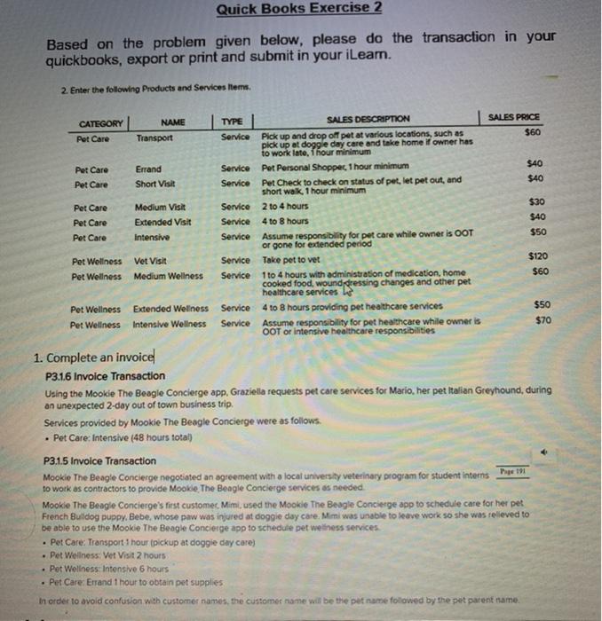 Quick Books Exercise 2 Based On The Problem Given Chegg Com